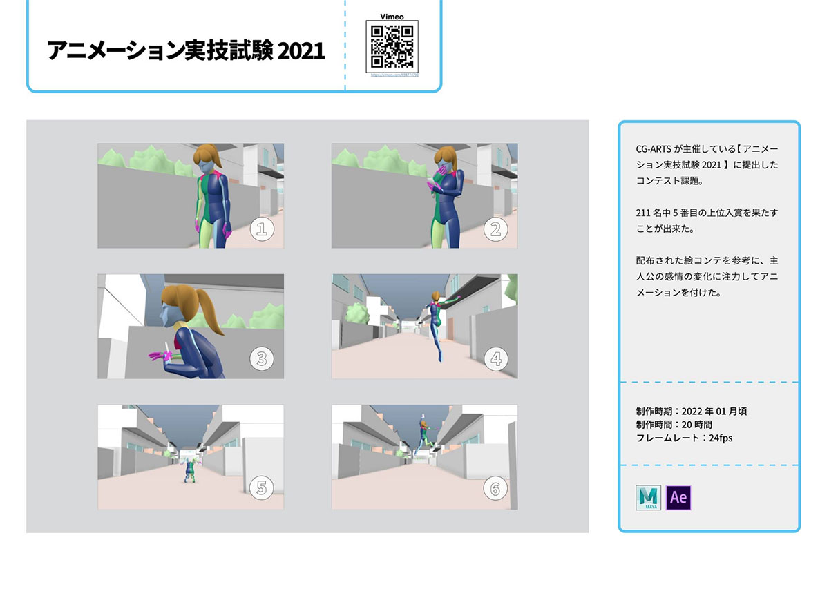 ▼以下は後藤さんのポートフォリオ(一部抜粋)とデモリールです。アニメーション実技試験の課題も入っています。ぜひ参考にしてください。